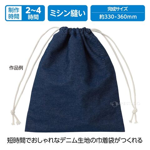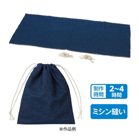- 3辺を縫うだけで簡単につくれる、人気のデニム生地を使用した巾着キットです。