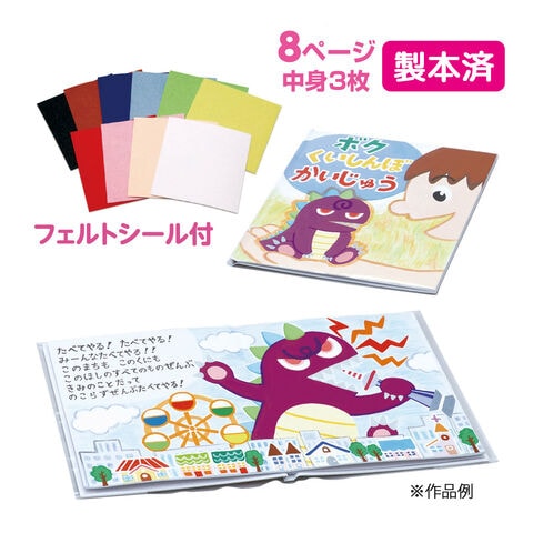 - 自分だけの絵本がつくれる製本済みキットに、便利なフェルトシールがついたセットです。