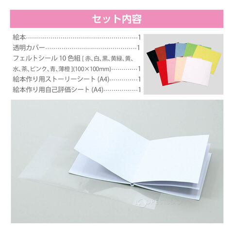 | セット内容 | 絵本本体×1、フェルトシールセット10色組×1、絵本作り用ストーリーシート(A4)×1、絵本作り用自己評価シート(A4)×1 |