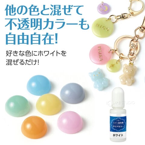 - 時間が経っても色あせにくく、アクセサリーやチャーム、小物など幅広いレジンクラフトにおすすめの着色剤です。