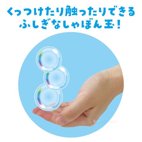 • くっつけたり触ったりできる不思議なしゃぼん玉です。
