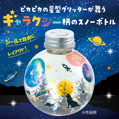 • 貼って混ぜて完成!簡単に作れるギャラクシースノーボトルキットです。