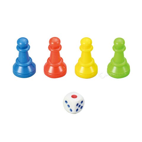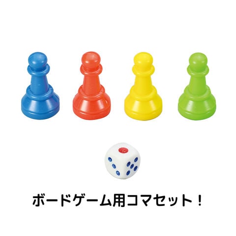 - カラフルな赤・青・黄・緑の4色のコマとサイコロが揃っており、手作りゲームをすぐに楽しめます。