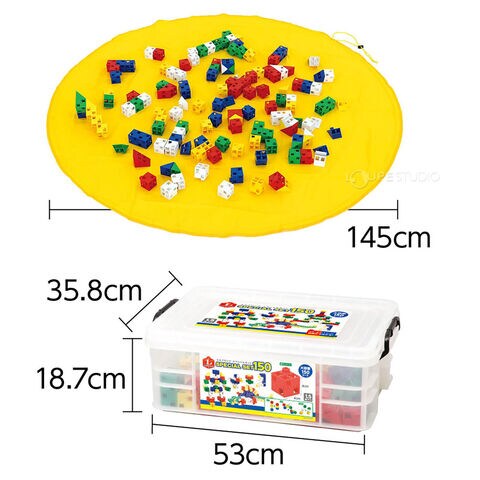 • 全方向からつなげられる独自構造のLブロックの150ピースと収納袋のセットです。
