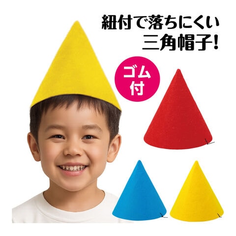 - ゴム付きでズレにくいフェルト素材の三角帽子です。
