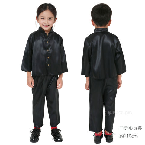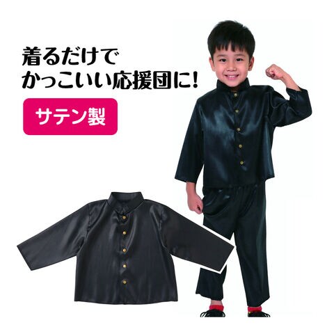 - 光沢のあるサテン生地を使用した、黒の学ラン風衣装で、着るだけでかっこよく決まります。