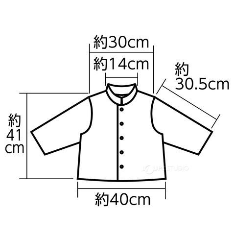 | 商品サイズ | 総丈/約410mm、肩幅/約300m、袖丈/約305mm、身幅/約400mm |