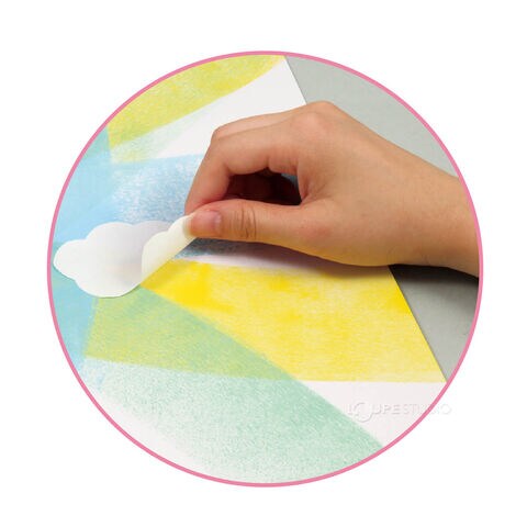 • 貼り直しが自由にできるため、繰り返しレイアウトを調整できるので、アート制作や図工の時間に便利です。