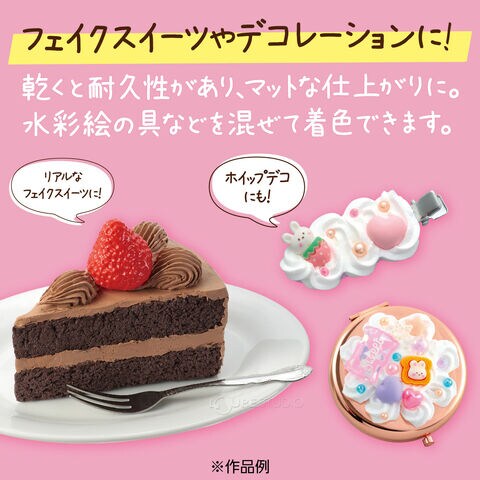 - 水彩絵の具などを混ぜて自由に着色できるため、フェイクスイーツやデコレーション作品づくりにおすすめです。
