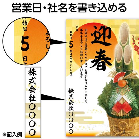 - 営業日や社名を書き込めるスペースがあり、年末年始の周知に便利な5枚入りセットです。