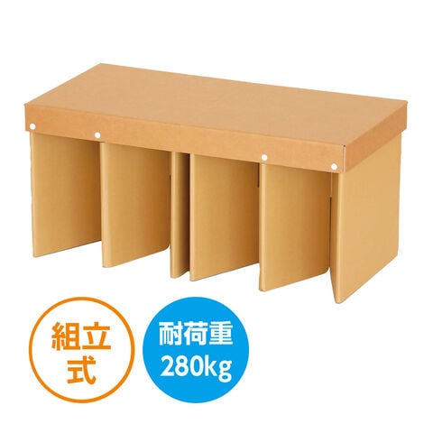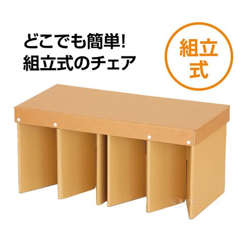 - 工具不要で誰でも簡単に組み立てられるダンボールベンチです。
