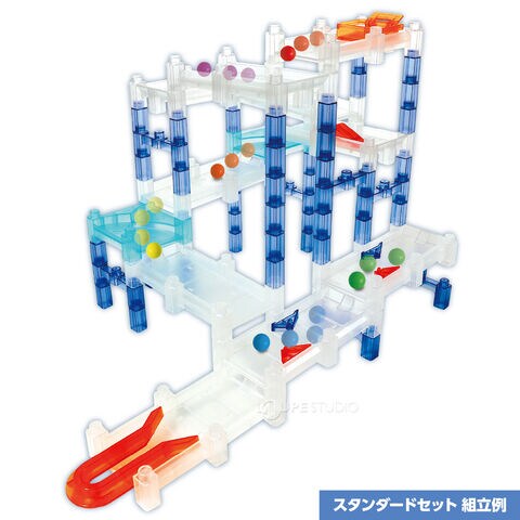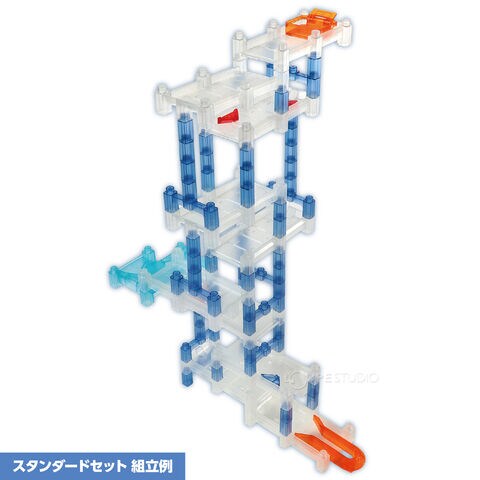 | セット内容 | スタート×1、ゴール×1、カーブ×2、ブリッジ×10、ストレート×10、バリケード×4(赤・青各2)、ダッシュ&スロー×10、ピラー×50、ボール×6、組立説明書×1、声掛けのコツBOOK×1 |