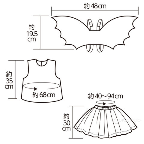 - 羽、トップス、スカートの3点セットで、簡単にかわいく変身できます。