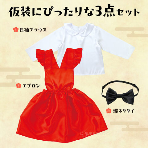 | セット内容 | ブラウス(ソフトサテン長袖ブラウス C)×1、スカート(ソフトサテンサロペットスカート C)×1、蝶ネクタイ(ソフトサテン蝶ネクタイ)×1 |