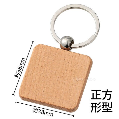 正方形型/本体/約38×38×7mm、キーリング/約φ33mm