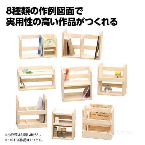 - また、本立てやCDラック、マガジンラックなど、8種類作品図面と製作工程表が載った説明書付きで、初心者でも手軽にDIYができます。