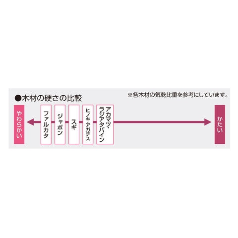 - ラジアタパインは加工性と接着性に優れ、安定した品質で扱いやすい木材です。