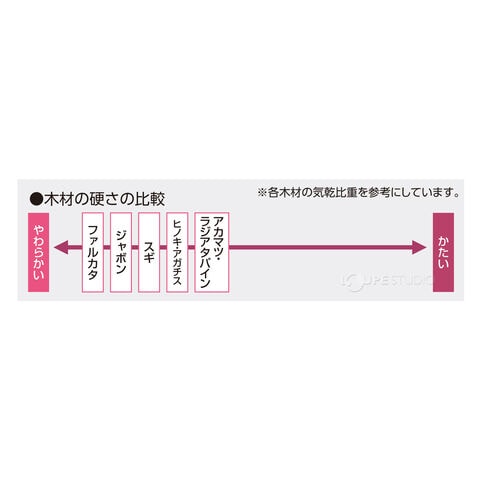- ラジアタパインは加工性と接着性に優れ、安定した品質で扱いやすい木材です。