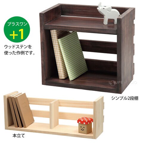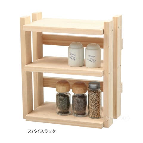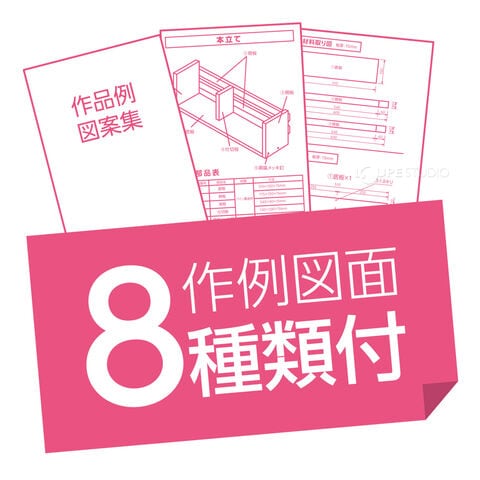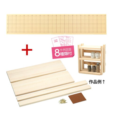 - また、スパイスラックや小物入れ、コーナーラックなど、8種類作品図面と製作工程表が載った説明書付きで、初心者でも手軽にDIYができます。