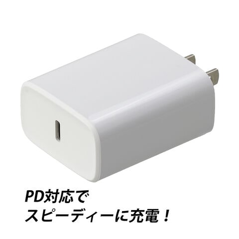 - 20W出力のPD対応USB Type-Cポート搭載ACアダプターです。