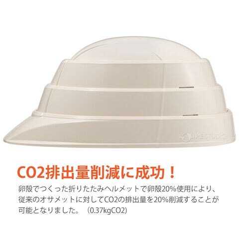 - 卵の殻を再利用して作られた、環境にやさしい折りたたみ式防災ヘルメットです。