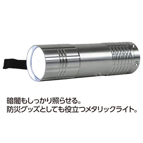 - アルミ製の丈夫なボディとストラップ付きで携帯性に優れ、災害時の備えにもおすすめです。