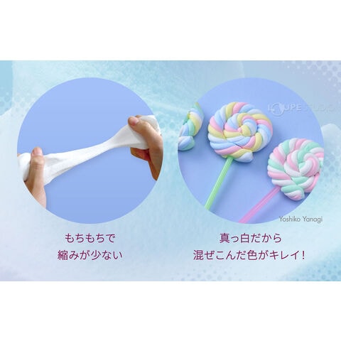 • 丸めてマシュマロ風、絞ってクリーム風など幅広い表現が楽しめる粘土です。