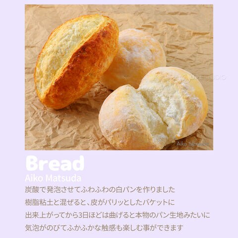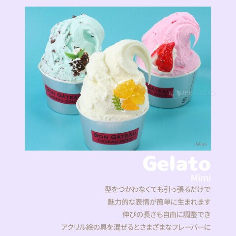 - 丸めてマシュマロ風、絞ってクリーム風など幅広い表現が楽しめる粘土です。