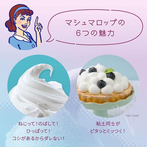 - 『マシュマロップ』は、よく伸びるのにダレないマシュマロみたいな超軽量樹脂粘土です。