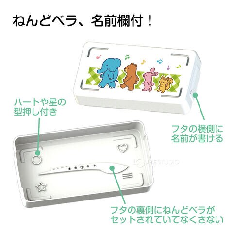 - ケースには、ヘラとハートや星の型押しがついており、楽しく作品づくりができます。