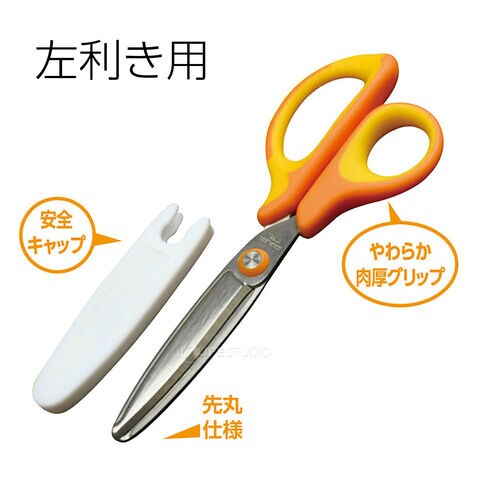 やわらかグリップ!軽い力で切れる安全はさみ!