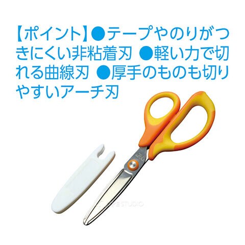 テープやのりが付きにくい非粘着刃を採用した右利き用はさみです。
