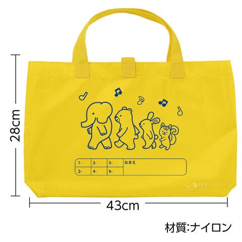 - かわいい動物デザインのナイロン製おけいこバッグです。