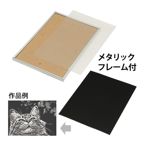 紙製スクラッチボードにメタリックフレームがついたセットです。制作した作品をすぐに飾れます。