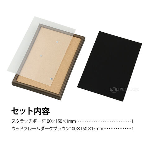 | セット内容 | スクラッチボード100×150×1mm ×1、ウッドフレームダークブラウン100×150×15mm ×1 |