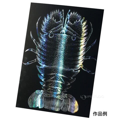 削ると七色に光るホログラムが浮かぶスクラッチボードです。完成後すぐに飾れるウッドフレームが付属しています。