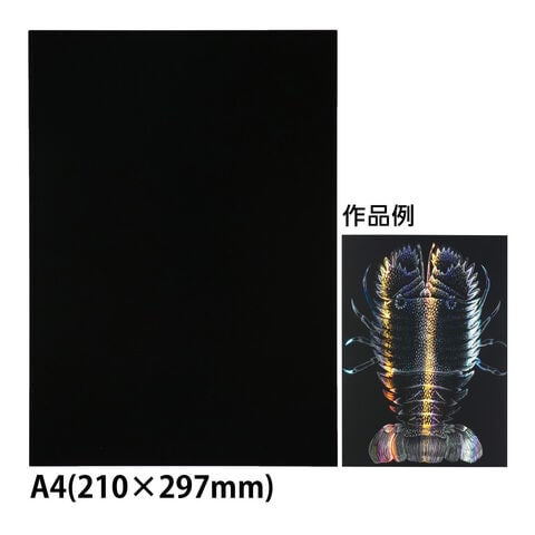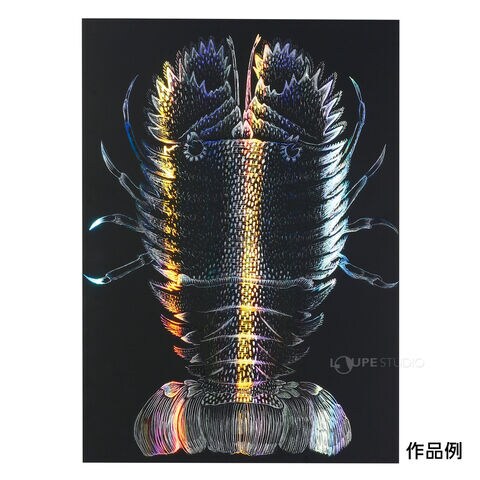 ニードルやくぎなどでひっかくと、削った部分がホログラムのベースが線状に表出します。