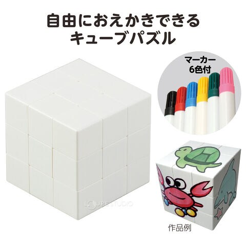 • 白い3×3キューブに自由に絵を描けるパズルキットです。