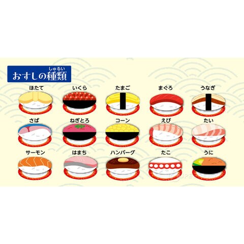 | セット内容 | フェルトおすし×30(15種、各2枚) |