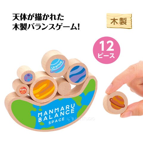 - 手のひらサイズで、惑星をモチーフにした木製バランスゲームです。