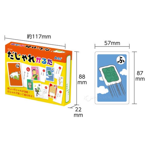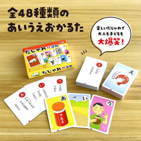 - 読み札がすべてだじゃれになっており、笑いながら言葉遊びを楽しめます。