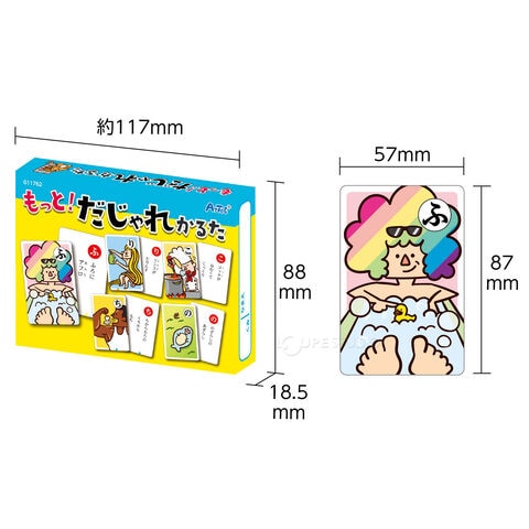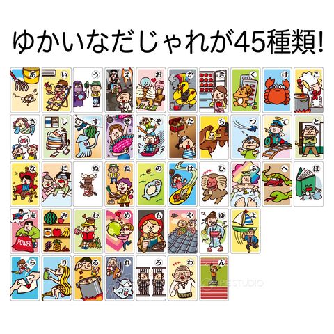 - 読み札がすべてだじゃれになっており、笑いながら言葉遊びを楽しめます。