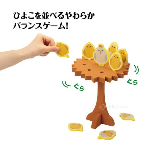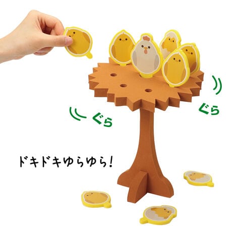 - ゆらゆら揺れる巣の上にひよこをそっと並べて遊ぶ、ドキドキ感が楽しいバランスゲームです。