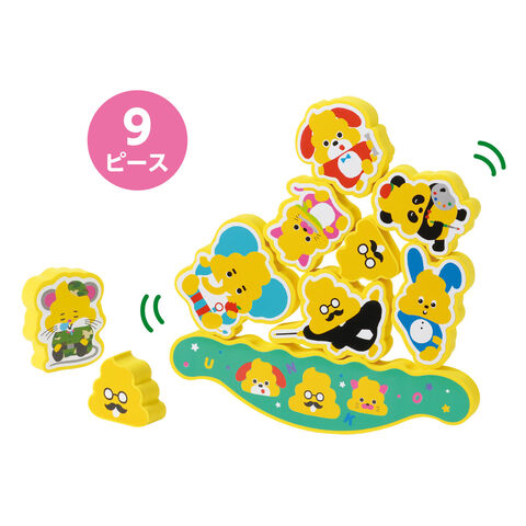 - ぐらぐら揺れる土台にキャラパーツを積み上げて遊びます。