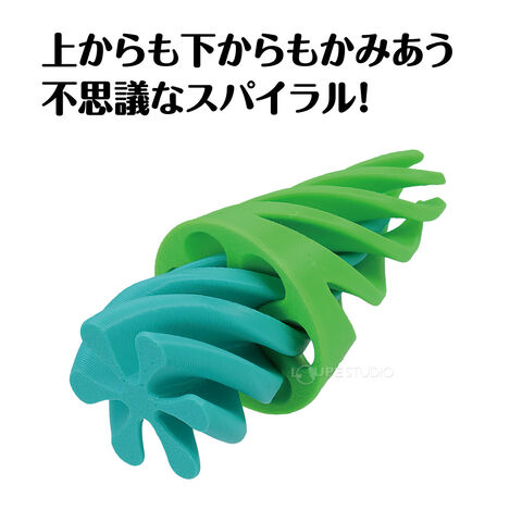 - ドリル形パーツ2個が上下どちらからでもかみ合う不思議なスパイラルおもちゃです。