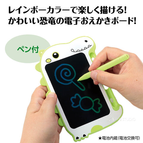 - レインボーカラーで楽しく描ける恐竜デザインの電子おえかきボードです。