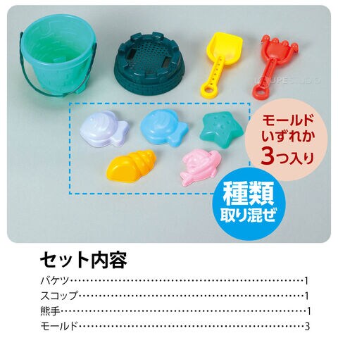 | セット内容 | バケツ×1、スコップ×1、熊手×1、モールド×3 |