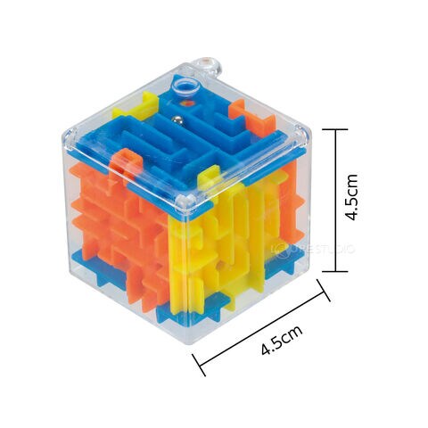 - 透明なキューブの中に、カラフルな階層構造の迷路がぎっしり詰まっています。