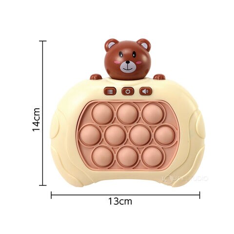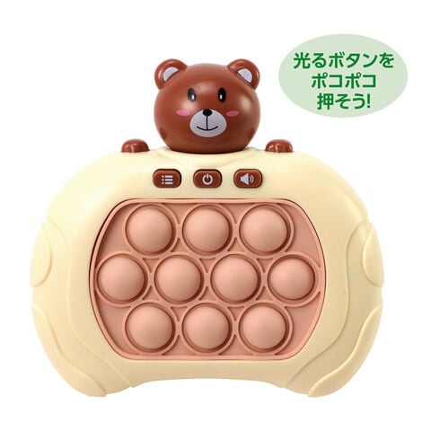 - 光るボタンをテンポよく押して遊べる、くまさんデザインの電子ポコポコゲームです。