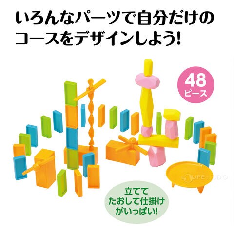 仕掛けが連動!考えて遊べるカラフルドミノセット!